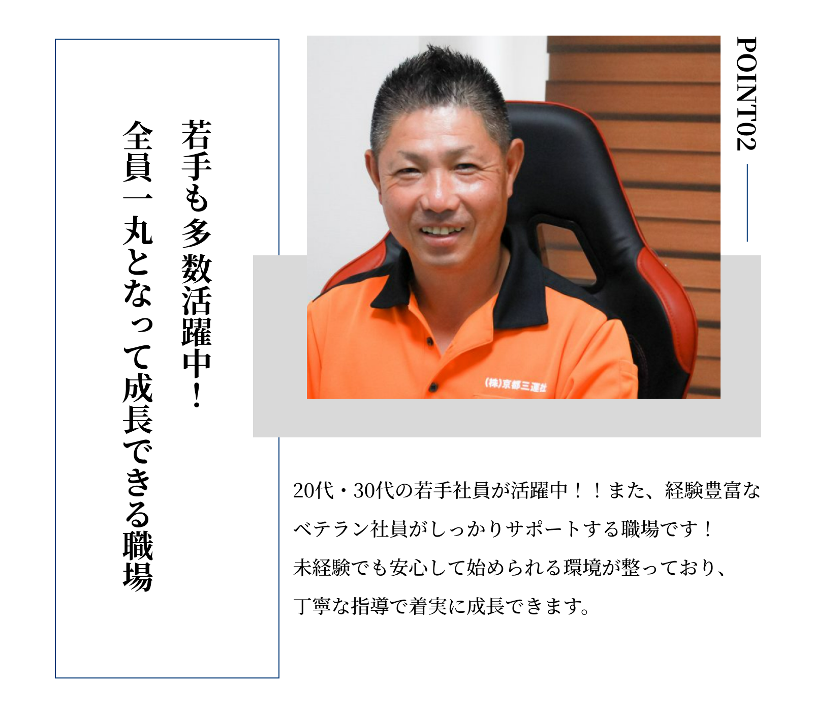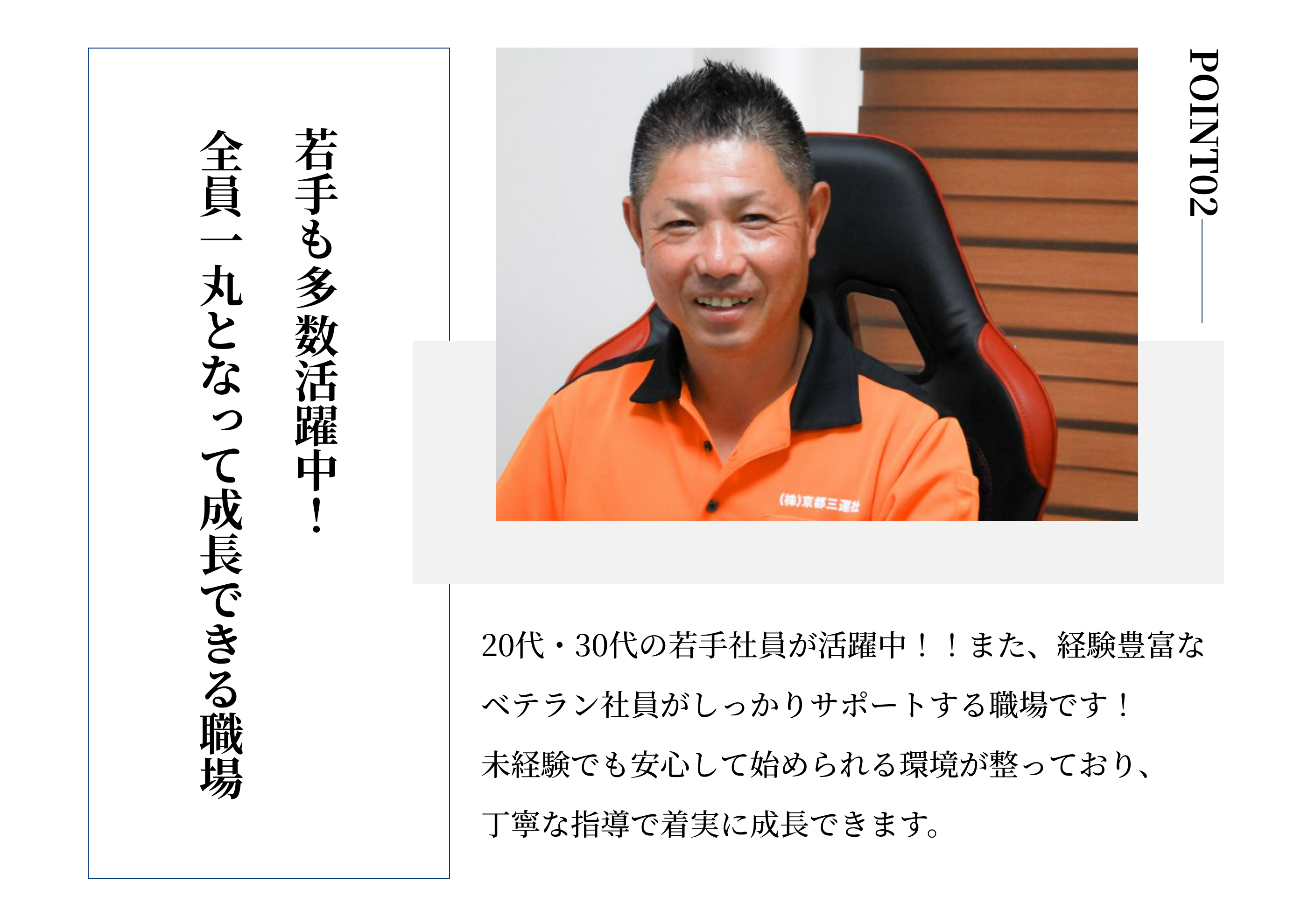 | 採用フロー | 書類選考→面接→合否通知 エントリーから採用まで:2〜3日 |